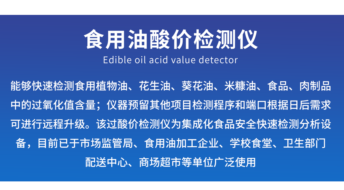 廣泛應(yīng)用于質(zhì)量監(jiān)督檢驗(yàn)、工商管理、油炸食品生產(chǎn)基地、食藥監(jiān)局、衛(wèi)生部門、肉制品食品深加工企業(yè)、商場(chǎng)超市、各大食品安全監(jiān)測(cè)系統(tǒng)等單位使用。