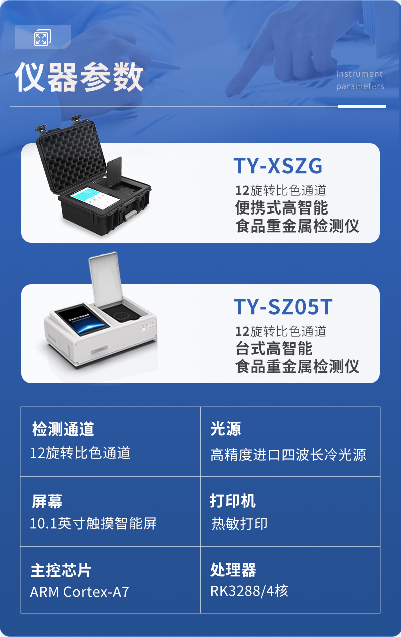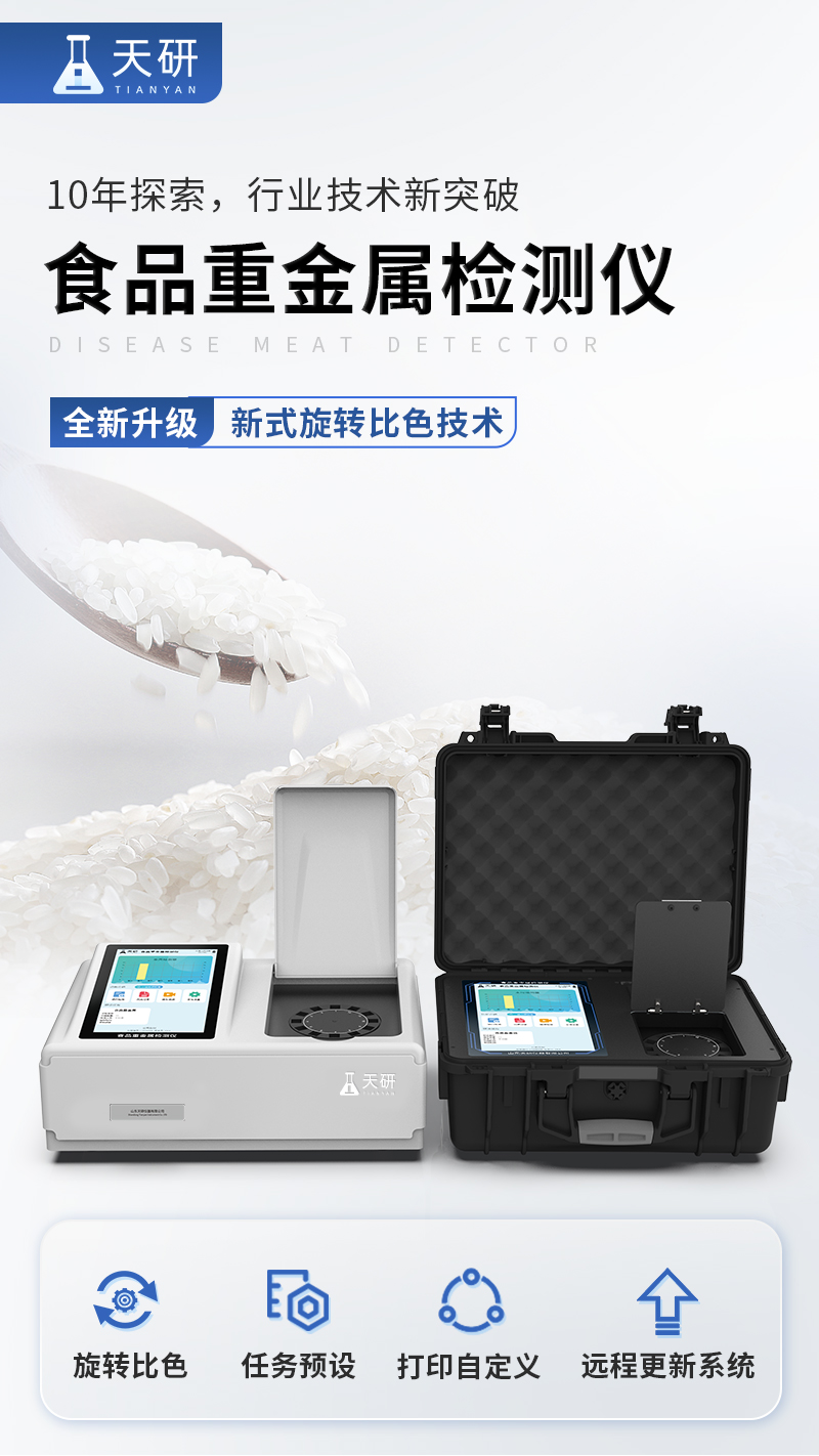 山東天研儀器有限公司生產(chǎn)的食品重金屬檢測儀為集成化食品安全快速檢測分析設(shè)備,采用手提箱一體化設(shè)計(jì),重金屬檢測儀可廣泛應(yīng)用于大米、糧谷、果品、蔬菜、藥材、水產(chǎn)品中重金屬鉛、鎘、六價(jià)鉻、汞、砷、鐵、鎳、鋁的快速檢測,檢測項(xiàng)目可根據(jù)日后需求可進(jìn)行遠(yuǎn)程升級。