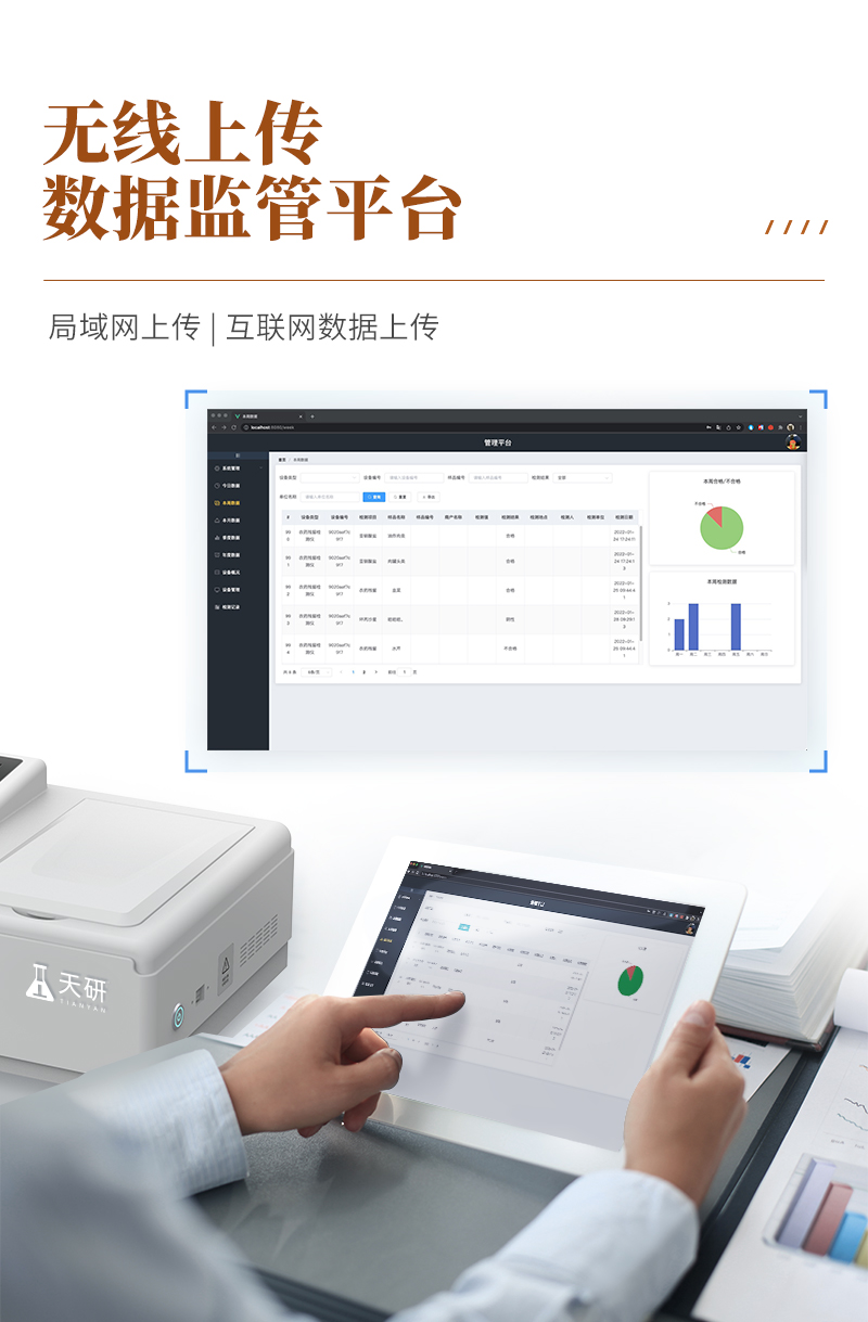 | 儀器采用手提一體化系統(tǒng)檢測(cè)技術(shù),將分光光度模塊、膠體金檢測(cè)模塊、新型農(nóng)殘檢測(cè)模塊、數(shù)字化管理模塊、無(wú)線通訊模塊高度集成于一體,支持檢測(cè)200種食品安全檢測(cè)項(xiàng)目,同時(shí)預(yù)留升級(jí)檢測(cè)方法。 | 儀器檢測(cè)模塊標(biāo)準(zhǔn)化、智能化,檢測(cè)項(xiàng)目可隨意自由組合。檢測(cè)箱體內(nèi)置多個(gè)標(biāo)準(zhǔn)檢測(cè)單元,檢測(cè)模塊可以調(diào)整配置。 | 顯示屏幕:儀器采用10.1英寸豎向液晶觸摸屏顯,搭配運(yùn)行安卓智能操作系統(tǒng),主控芯片采用ARM Cortex-A7,RK3288/4核處理器,主頻1.88Ghz,操作方便,性能更強(qiáng)。 | 檢測(cè)通道:≥12通道;采用精密旋轉(zhuǎn)比色池設(shè)計(jì),使用同芯片同光源校準(zhǔn)精度,解決不同光源之間的誤差值,更加準(zhǔn)確**。(1-12通道間誤差0.1%,**號(hào):ZL202022821055.2) | 儀器光源:高精度進(jìn)口四波長(zhǎng)冷光源,每個(gè)通道均配置 410、520、590、630nm 波長(zhǎng)光源,標(biāo)配**的光路切換裝置,**光路切換功能可實(shí)現(xiàn)64波長(zhǎng),并且所有檢測(cè)項(xiàng)目可實(shí)現(xiàn)所有通道同時(shí)檢測(cè)。 | 設(shè)備可一鍵校準(zhǔn),自動(dòng)保存校準(zhǔn)數(shù)據(jù),自動(dòng)對(duì)比校驗(yàn),得到精準(zhǔn)光源,采用Android SP存儲(chǔ)數(shù)據(jù),光源數(shù)據(jù)永不丟失,方便每一次使用。 | 通訊接口:配備無(wú)線通信模塊、4G(APN)通訊模塊、藍(lán)牙傳輸,同時(shí)具有雙USB接口以及RJ45網(wǎng)線接口,可以多方式實(shí)現(xiàn)數(shù)據(jù)保存及數(shù)據(jù)傳輸。 | 存儲(chǔ)方式:支持U盤(pán)存儲(chǔ),標(biāo)準(zhǔn)USB接口,免驅(qū)動(dòng)安裝。檢測(cè)結(jié)果存儲(chǔ)容量20萬(wàn)條以上,可生成Excel表格進(jìn)行拷貝,并具有登錄保護(hù)功能。 | 智能化操作系統(tǒng):: ★操作系統(tǒng):儀器可在同一檢測(cè)界面自動(dòng)對(duì)應(yīng)相關(guān)檢測(cè)通道,一次性選擇1-12個(gè)樣品名稱,無(wú)需退出界面,節(jié)省操作時(shí)間。并可以對(duì)每個(gè)通道屬性和樣品信息單獨(dú)進(jìn)行編輯,例如送檢單位、人員,檢測(cè)人員等,打印時(shí)勾選打印顯示。 | ★數(shù)據(jù)集成系統(tǒng):設(shè)備首頁(yè)自動(dòng)匯總分析檢測(cè)數(shù)據(jù),包含:周檢測(cè)數(shù)據(jù)、月檢測(cè)數(shù)據(jù),全部檢測(cè)總數(shù)量,均包含檢測(cè)總數(shù),合格數(shù),不合格數(shù),以及相關(guān)柱形分析圖,各項(xiàng)檢測(cè)數(shù)據(jù)一目了然,無(wú)需電腦查詢,更加快捷直觀。 | ★數(shù)據(jù)庫(kù)系統(tǒng):十幾項(xiàng)數(shù)據(jù)庫(kù)分類管理儀器:包含項(xiàng)目類型、項(xiàng)目數(shù)據(jù)、檢測(cè)數(shù)據(jù)、歷史記錄、國(guó)標(biāo)信息、曲線信息、采樣信息、檢測(cè)信息、受檢信息、復(fù)核信息、圖表信息、光源校準(zhǔn)信息、打印樣式信息、樣品庫(kù)信息等等,數(shù)據(jù)庫(kù)之間互相協(xié)調(diào)聯(lián)動(dòng)保證數(shù)據(jù)的真實(shí)完整性。同時(shí)產(chǎn)品數(shù)據(jù)庫(kù)以及歷史檢測(cè)記錄支持一鍵檢索功能。 | ★限量規(guī)判系統(tǒng):具有限量查詢、添加物質(zhì)合規(guī)判定系統(tǒng)。檢測(cè)出結(jié)果后,系統(tǒng)自動(dòng)調(diào)用系統(tǒng)數(shù)據(jù)庫(kù)中相關(guān)國(guó)標(biāo)進(jìn)行比對(duì)判定,客觀顯示判定結(jié)果是否合格 | ★項(xiàng)目預(yù)設(shè)系統(tǒng):儀器具有任務(wù)預(yù)設(shè)模塊,一鍵提前預(yù)設(shè),給出方便快捷的新檢測(cè)方案,每一個(gè)任務(wù)分別可以設(shè)置不同的樣品、批次、編號(hào)、來(lái)源、備注、抽樣信息、檢測(cè)信息、受檢信息、復(fù)核信息等更多信息。樣品送檢時(shí)一鍵調(diào)取保存信息,并可多次調(diào)取,大大提高檢測(cè)效率。 | ★數(shù)據(jù)監(jiān)管系統(tǒng):同步對(duì)接監(jiān)管平臺(tái),數(shù)據(jù)可局域網(wǎng)和互聯(lián)網(wǎng)數(shù)據(jù)上傳,檢測(cè)結(jié)果可選擇直接傳至食品安全監(jiān)管平臺(tái)。進(jìn)行區(qū)域食品安全監(jiān)管及大數(shù)據(jù)分析處理與數(shù)據(jù)統(tǒng)計(jì),檢測(cè)區(qū)域食品安全長(zhǎng)短期動(dòng)態(tài),達(dá)到食品安全問(wèn)題預(yù)估、預(yù)警。 | ★打印系統(tǒng):內(nèi)置全新打印機(jī),新創(chuàng)自定義打印方式,可按需靈活勾選控制:產(chǎn)品合格證(國(guó)家農(nóng)業(yè)部標(biāo)準(zhǔn)要求),二維碼,抽樣信息、檢測(cè)信息,受檢信息、復(fù)核信息、抽樣日期、檢測(cè)日期等信息的打印。 | 供電模式:儀器交直流兩用,直流12V供電,可連接車載電源,可配6ah大容量充電鋰電池,電量可實(shí)時(shí)顯示,方便戶外流動(dòng)測(cè)試。 | 膠體金檢測(cè)模塊:采用雙通道CMOS成像處理技術(shù)及膠體金免疫層析技術(shù),可同時(shí)讀取雙膠體金卡數(shù)據(jù),自動(dòng)采集、處理分析,將檢測(cè)結(jié)果顯示,并可根據(jù)參考限值自動(dòng)判斷檢測(cè)結(jié)果,可檢測(cè)常見(jiàn)的獸藥殘留、生物毒素、抗生素、違禁添加物等。 | ★探測(cè)技術(shù):CMOS成像探測(cè); | ★檢測(cè)通道:1個(gè)通道; | ★檢測(cè)方式:消線法和比色法; 
