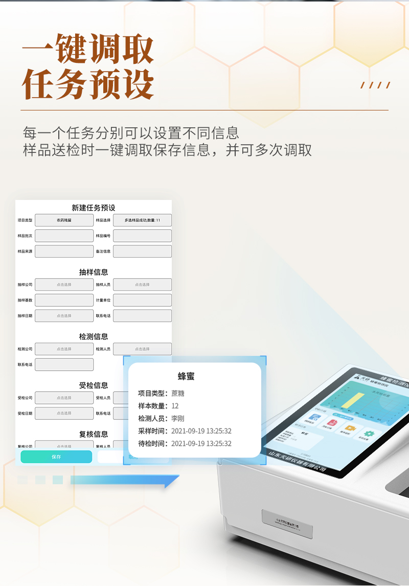 產(chǎn)品介紹: 山東天研儀器有限公司生產(chǎn)的高智能蜂蜜檢測(cè)儀為集成化食品安全快速檢測(cè)分析設(shè)備,采用臺(tái)式一體化設(shè)計(jì),可快速檢測(cè)200多種食品安全項(xiàng)目,包含非食用化學(xué)物質(zhì)、濫用食品添加劑、農(nóng)藥殘留、獸藥殘留、重金屬、病害肉、營(yíng)養(yǎng)強(qiáng)化劑、抗生素類殘留、激素類殘留、真菌毒素類殘留、化學(xué)類殘留等項(xiàng)目的定性