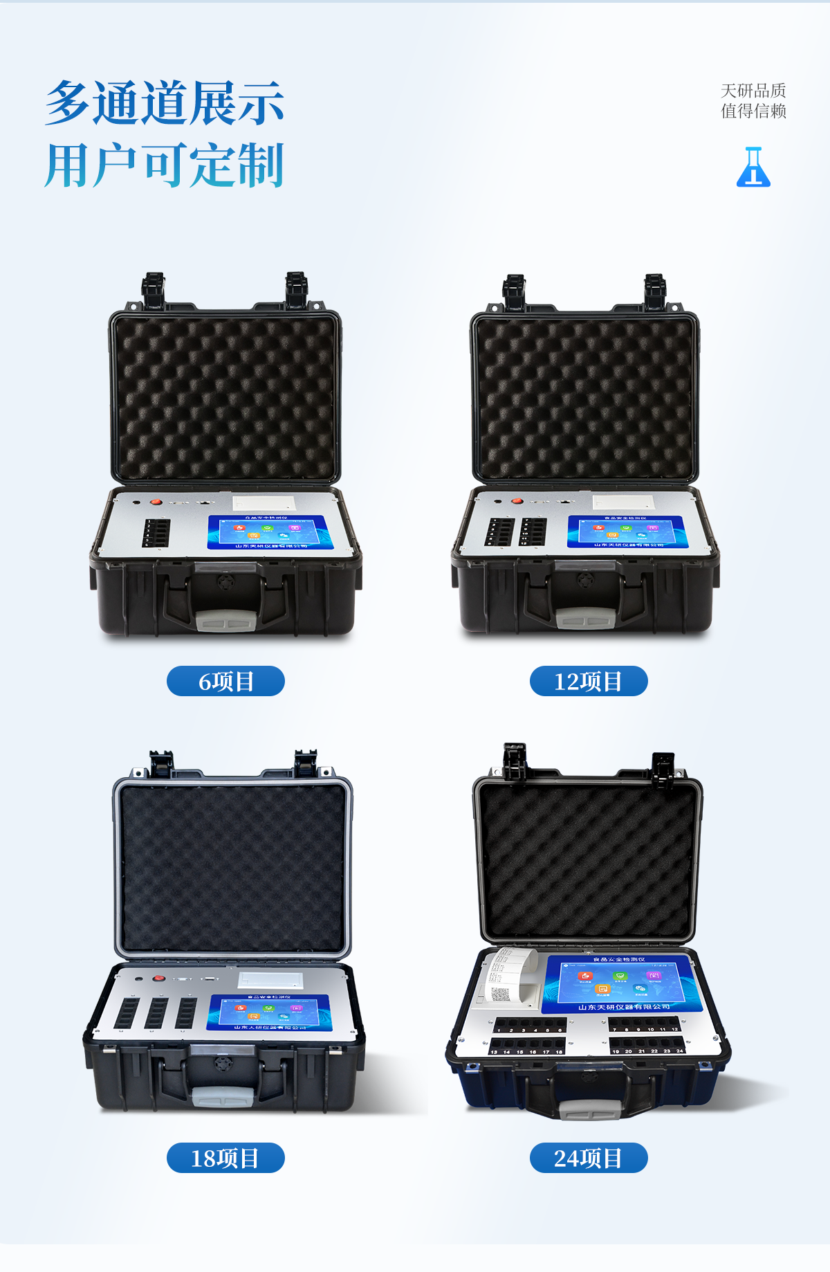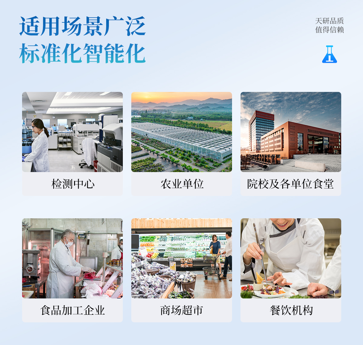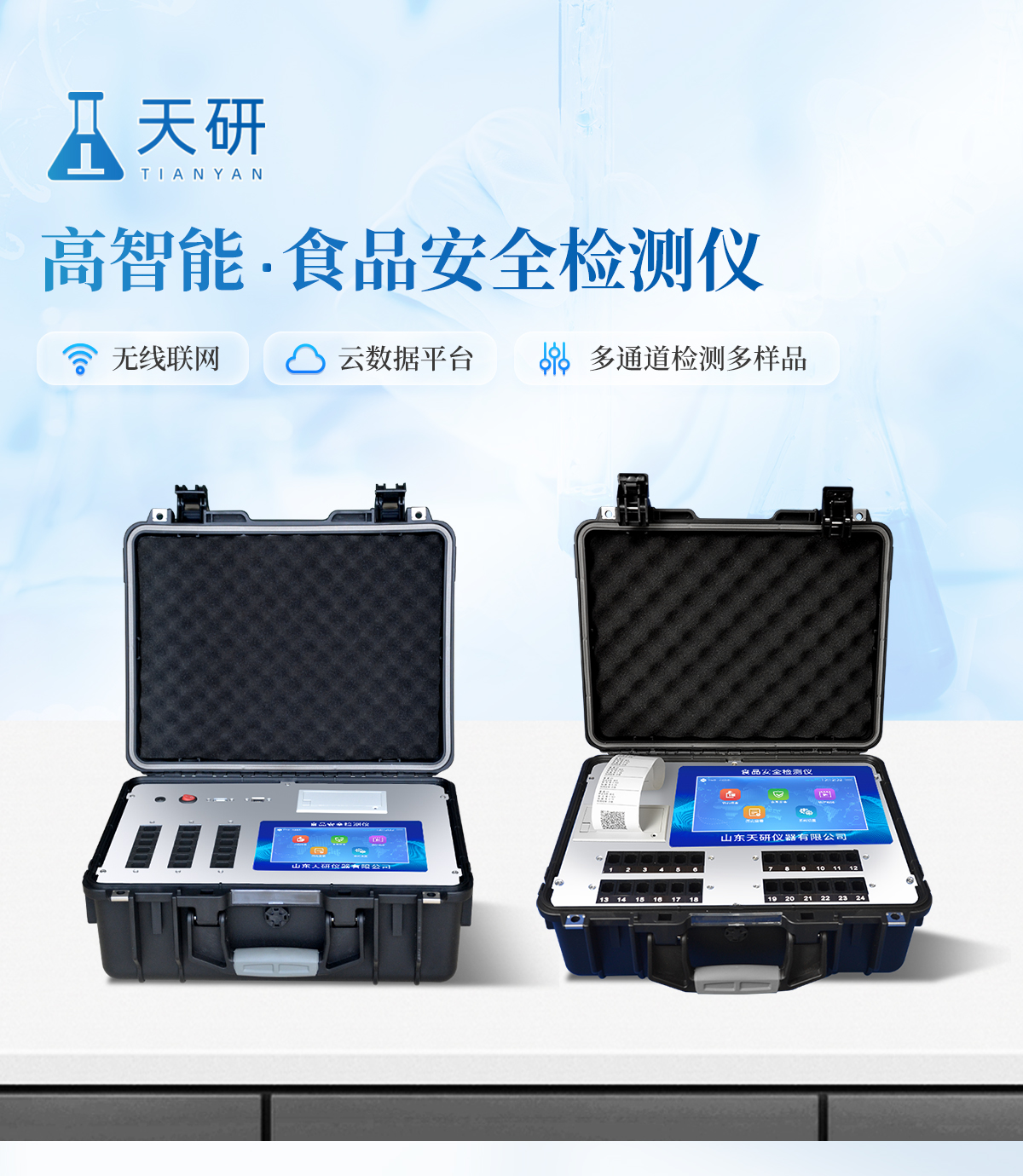 多功能食品安全檢測儀可快速檢測200多項(xiàng)目,包含非食用化學(xué)物質(zhì)、濫用食品添加劑、農(nóng)藥殘留、獸藥殘留、重金屬、病害肉、營養(yǎng)強(qiáng)化劑、抗生素類殘留、激素類殘留、真菌毒素類殘留、化學(xué)類殘留等現(xiàn)場的定性定量檢測。該多功能食品安全檢測儀為集成化食品安全快速檢測分析設(shè)備,廣泛應(yīng)用于市場監(jiān)管局、檢測中心、衛(wèi)生監(jiān)督部門、農(nóng)業(yè)部門、院校及各單位食堂、食品肉產(chǎn)品深加工企業(yè)、商超市場、司法部門、餐飲機(jī)構(gòu)、養(yǎng)殖場、屠宰場、檢驗(yàn)檢疫部門等單位使用。