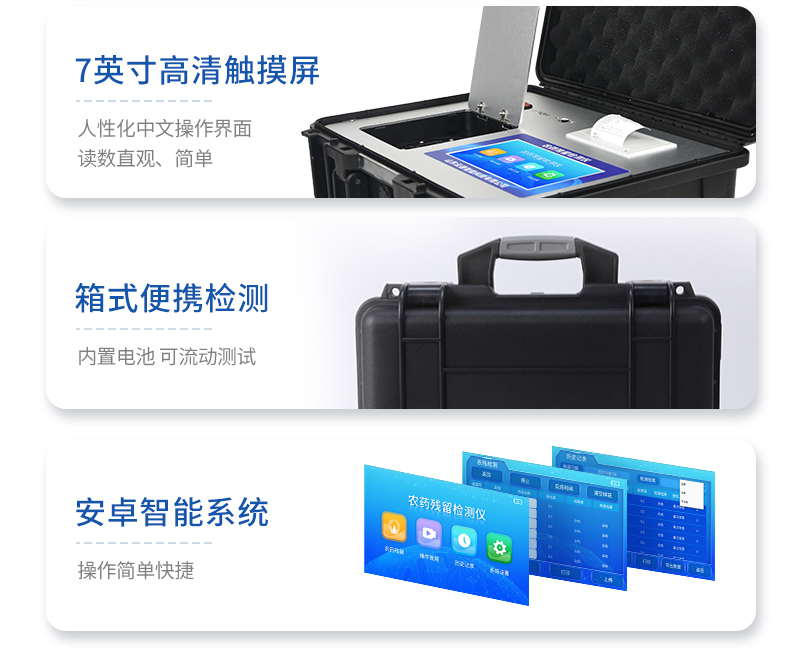 產(chǎn)品簡介:山東天研儀器有限公司生產(chǎn)的農(nóng)藥殘留檢測儀廣泛應(yīng)用于主要用于蔬菜、水果、茶葉、糧食、農(nóng)副產(chǎn)品等食品中農(nóng)藥殘留的快速檢測,依據(jù)國標(biāo)GB/T5009.199-2003進(jìn)行檢測,適用于果蔬茶生產(chǎn)基地以及農(nóng)貿(mào)批發(fā)銷售市場現(xiàn)場檢測,餐館、學(xué)校、食堂、家庭果蔬加工前的安全速測等。技術(shù)參數(shù):機(jī)器采用全新安卓智能系統(tǒng),主控芯