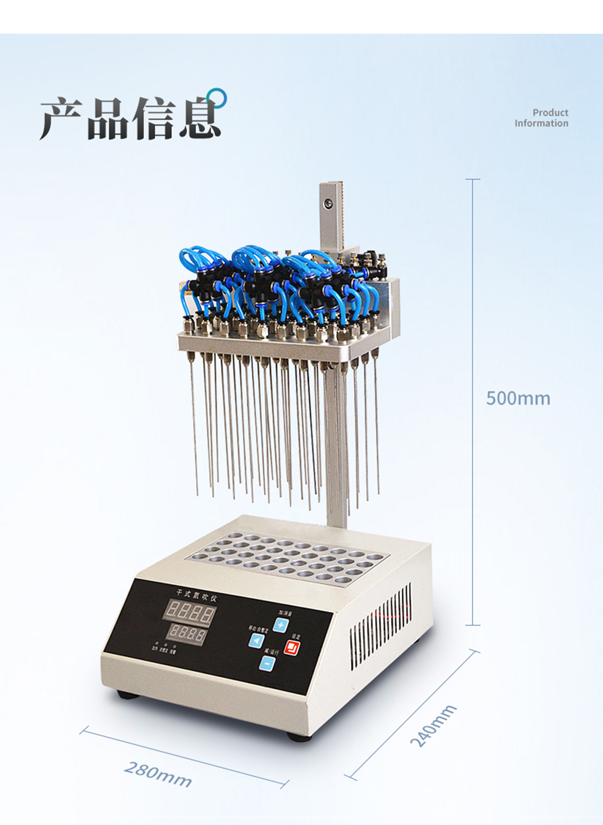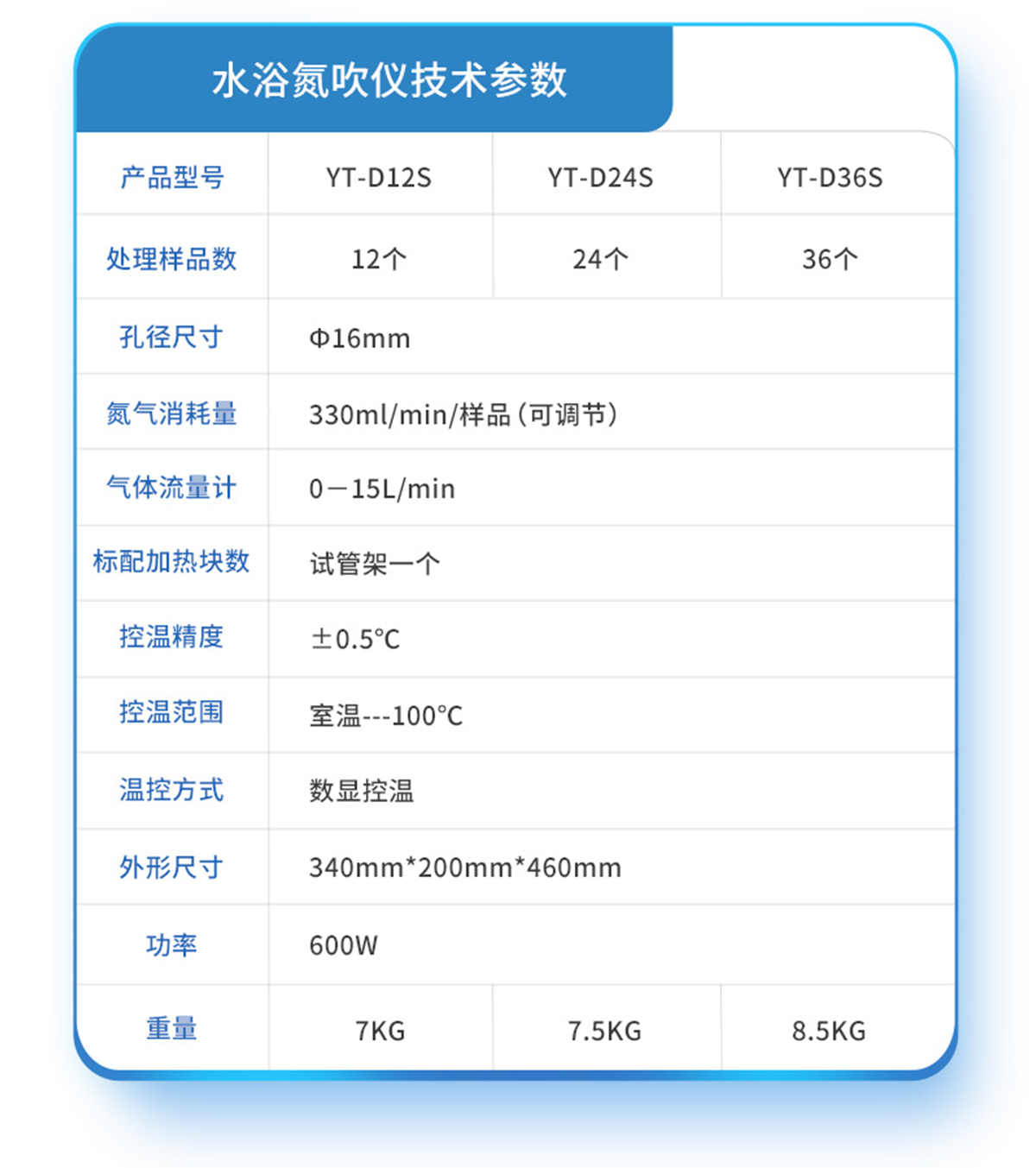 | YT-D36S | 36個 | Ф16mm | 330ml/min/樣品(可調(diào)節(jié)) | 0-15L/min | 試管架一個 | ±0.5℃ | 室溫---100℃ | 數(shù)顯控溫 | 340*200*460 | 600W | 8KG |
