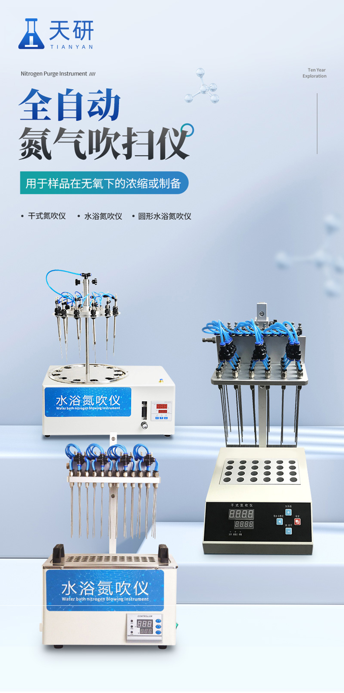 檢測項(xiàng)目: 水浴氮吹儀采用吹掃捕集技術(shù),同時(shí)可對樣品進(jìn)行控溫加熱,利用氮?dú)獾榷栊詺怏w快速、可控、連續(xù)地吹到樣品表面來達(dá)到樣品溶液快速無氧濃縮。該方法具有省時(shí)、便捷、準(zhǔn)確的特點(diǎn)。廣泛用于食品安全、醫(yī)藥、農(nóng)藥殘留檢測、臨床藥代等領(lǐng)域。 產(chǎn)品特點(diǎn):