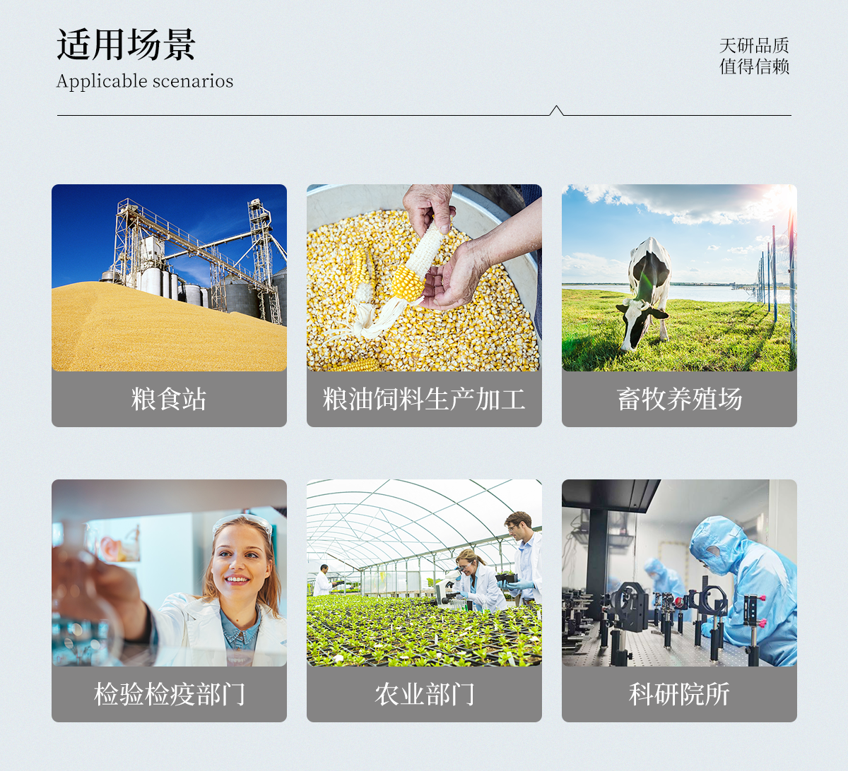 真菌毒素檢測儀可快速檢測糧食、飼料、谷物、食用油、中如玉米、大米、小麥、大麥、糙米、麩皮、稻谷、豆粕、米糠、飼料中的黃曲霉毒素B1、T2毒素、玉米赤霉烯酮、嘔吐毒素、赭曲霉毒素、伏馬毒素。