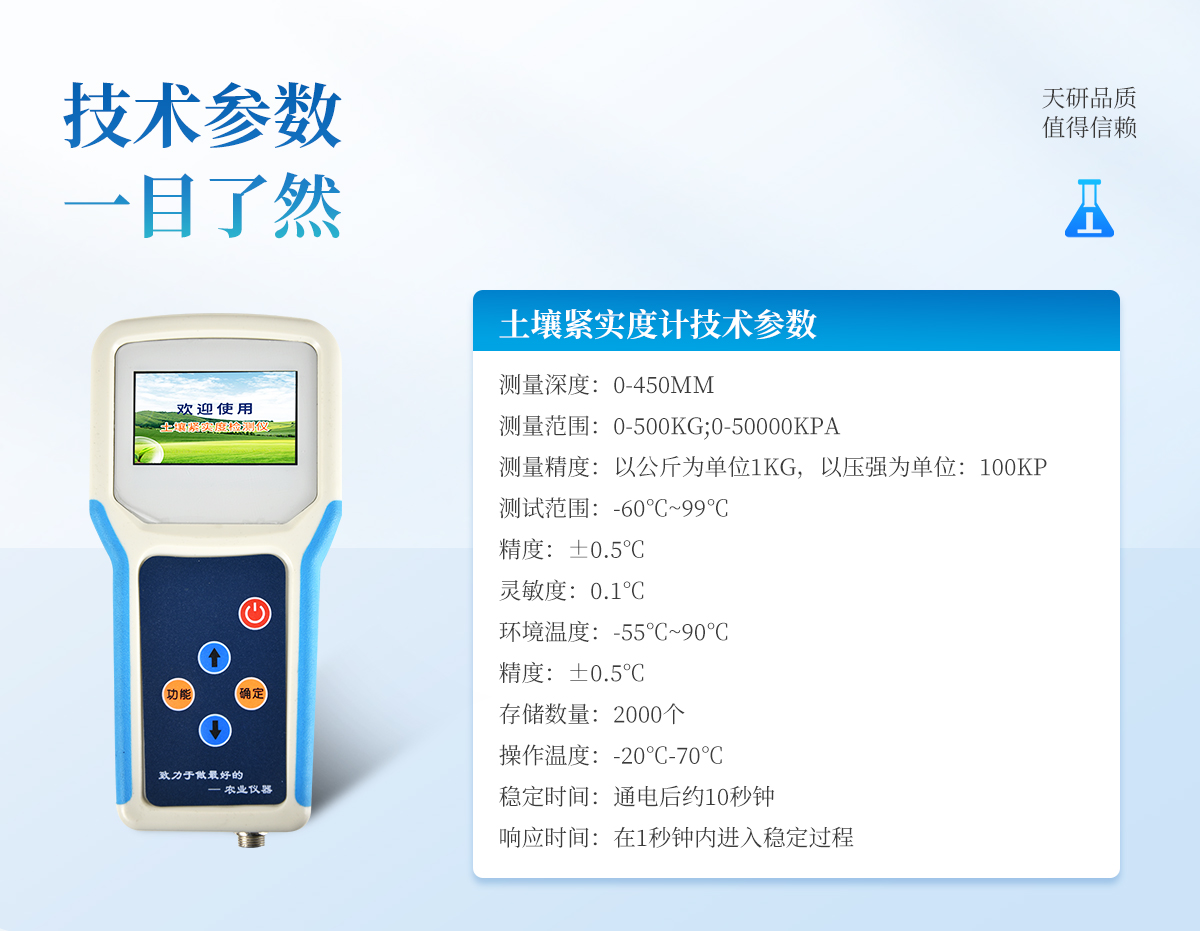 | 該款儀器是本公司由本公司專門研制,用于快速測量土壤環(huán)境中的各個參數(shù)值,該款傳感器采用原裝進口的微控芯片,具有運算速度快,存儲數(shù)據多,測量數(shù)據精準等優(yōu)點,使用大容量鋰電池供電,經濟環(huán)保。 | .采用一體化結構設計,集液晶顯示儀表+傳感器+便攜手提箱合成在一個便攜式手提箱內,本機操作簡單,性能可靠,野外攜帶極為方便。 | .采用大液晶屏顯示測量數(shù)據、實時時間、當?shù)亟浘暥?,剩余電量等信息,存儲?shù)據等,便于野外攜帶作業(yè)。 | .高精度傳感器,封裝、手柄、測量桿采用優(yōu)質不銹鋼材料。堅固耐用、永不生銹。 | .能存儲指定各個點的土壤測量值,上位機軟件功能強大,隨時可以通過USB接口將記錄中的數(shù)據導出到計算機上,并可以存儲為EXCE表格文件,生成數(shù)據曲線,以供其它分析軟件進一步進行數(shù)據處理。 | 土壤緊實度計 適用范圍: | 廣泛應用于農業(yè)、氣象、林業(yè)、水利、環(huán)保、地質災害預防等領域的科研、生產、教學中。 |