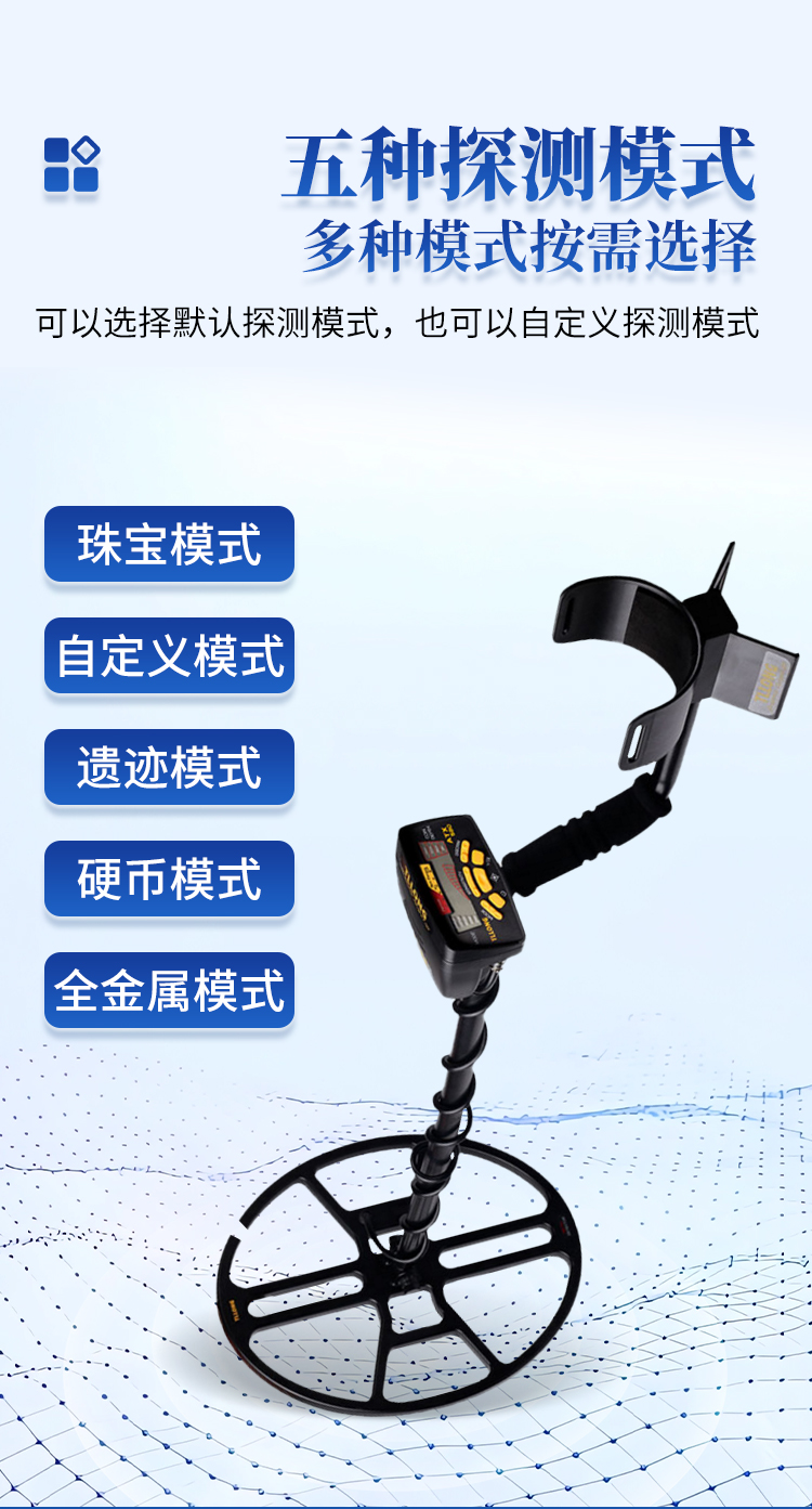 | 操作方式:地平衡/識(shí)別 | 發(fā)射頻率:6.99KHz | 音頻頻率:437Hz | 功 率:約2.5W | 電 源:11.1V4Ah鋰離子電池 | 標(biāo) 配:充電器、耳機(jī)、探測(cè)盤 | 探測(cè)盤尺寸:探測(cè)盤(直徑390mm) |