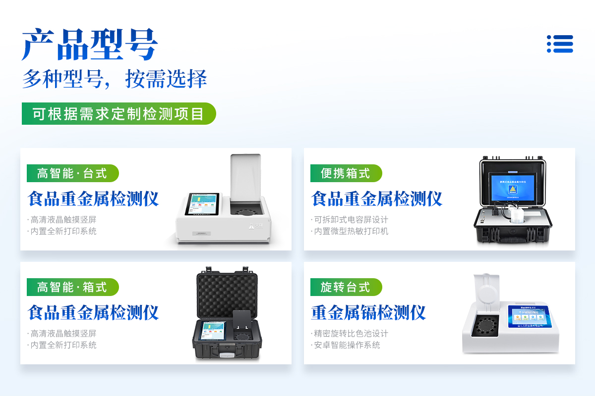 重金屬檢測儀可廣泛應(yīng)用于大米、糧谷、果品、蔬菜、藥材、水質(zhì)、水產(chǎn)品中重金屬鎘的快速檢測,檢測項目可根據(jù)客戶的需求定制。