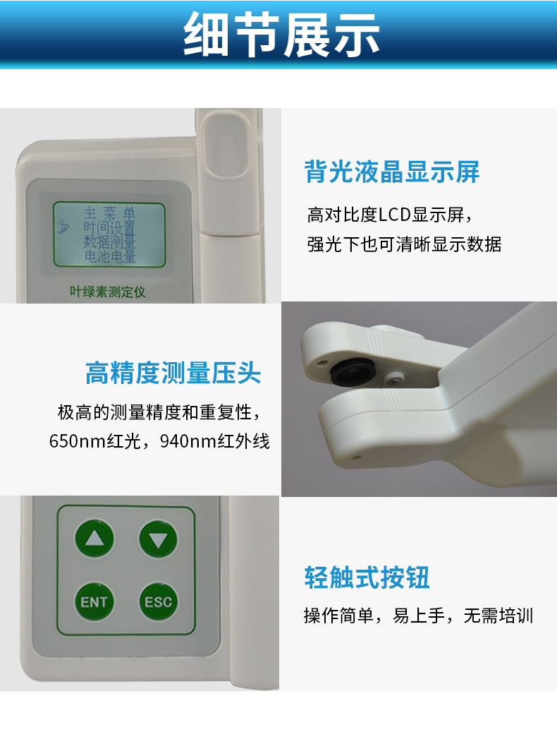 葉綠素測定儀可 以即時測量植物的葉綠素相對含量(單位SPAD)或綠色程度、葉面溫度,從而解植物真實的硝基需求量并且了解土壤硝基的缺乏程度或是否過多地施加了氮肥。 可以通過此款儀器來增加氮肥的利用率,并可保護(hù)環(huán)境??蓮V泛應(yīng)用于農(nóng)林相關(guān)科研單位和高校對植物生理指標(biāo)的研究和農(nóng)業(yè)生產(chǎn)的指導(dǎo)。