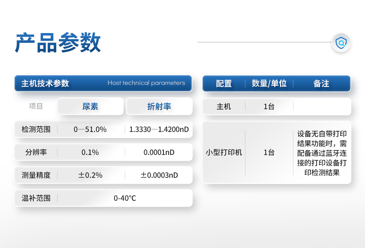 | 可快速測(cè)量車用尿素的濃度和折光率,具有自動(dòng)溫度補(bǔ)償功能 | 帶有棱鏡蓋板,保護(hù)樣品,確保樣品精度。 | 液晶顯示屏顯示檢測(cè)結(jié)果等信息。 | 儀器可方便攜帶,適用于野外戶外使用 | 電源:堿性電池或可充電鋰電池,超低功耗,支持長(zhǎng)時(shí)間工作。 | 儀器有PC軟件擴(kuò)展功能。 | 儀器自帶打印檢測(cè)結(jié)果功能或通過(guò)藍(lán)牙外接小型打印設(shè)備打印檢測(cè)結(jié)果。 |