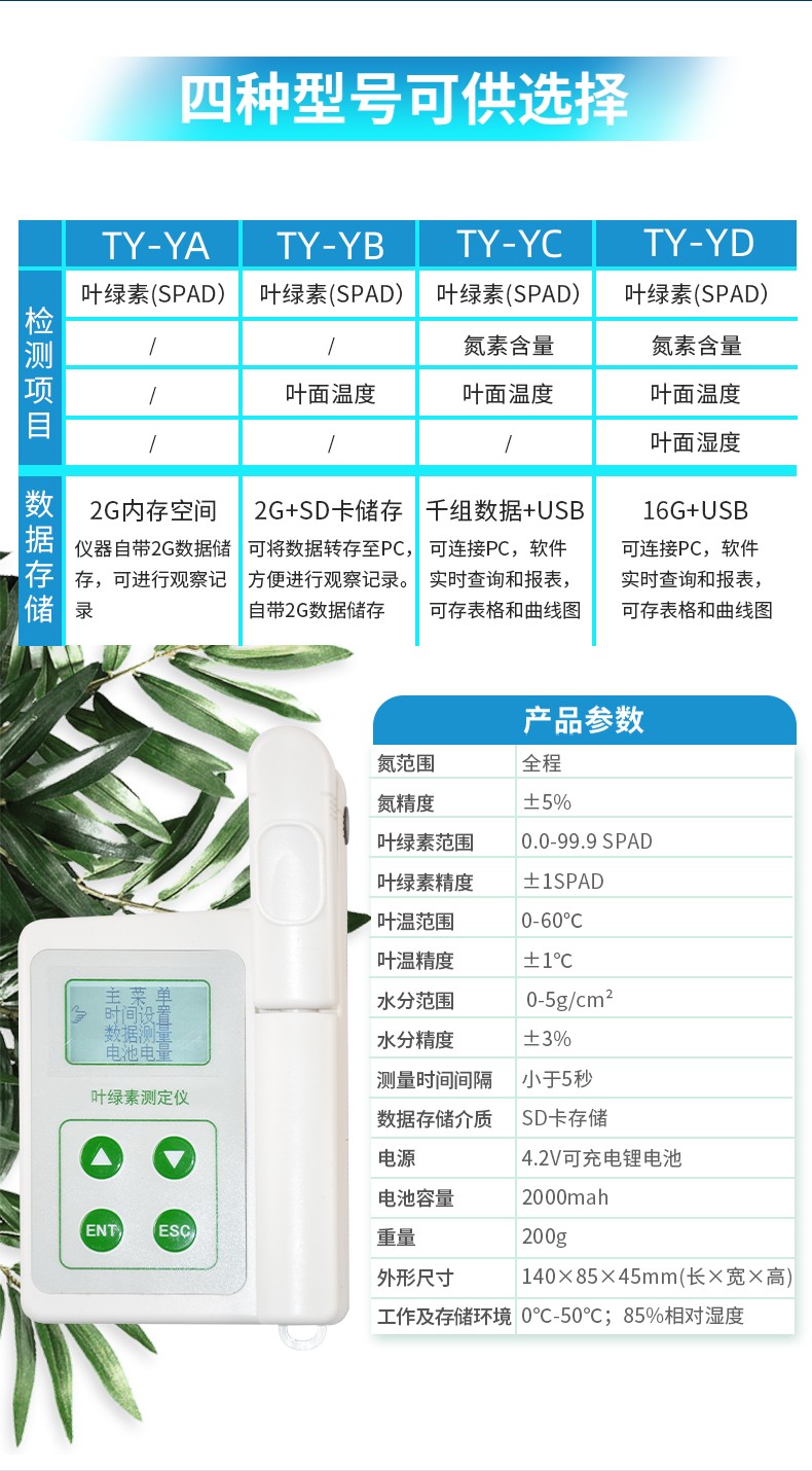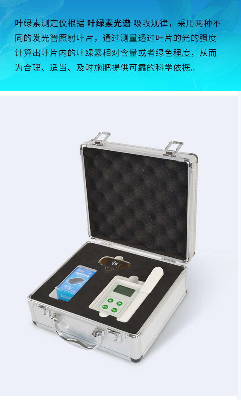 TY-YD葉綠素測定儀根據(jù)葉綠素光譜吸收規(guī)律,采用兩種不同的發(fā)光管照射葉片,通過測量透過葉片的光的強度計算出葉片內的葉綠素相對含量或者綠色程度,從而為合理、適當、及時施肥提供可靠的科學依據(jù),廣泛應用于農業(yè)、林業(yè)、植物等科學研究和生產指導。