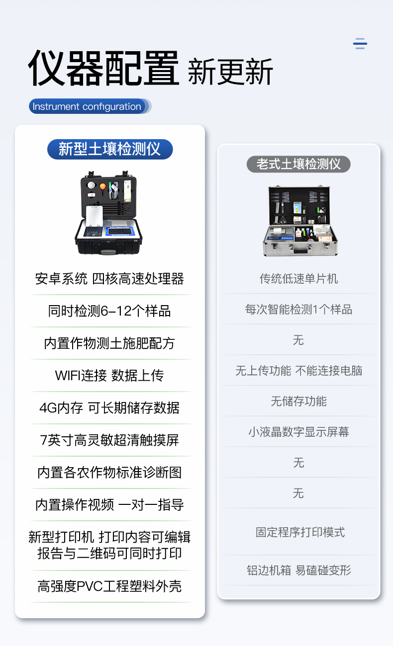 | ★1、Android安卓智能操作系統(tǒng),主控芯片采用ARM Cortex-A7,RK3288/4核處理器,主頻1.88Ghz,運轉(zhuǎn)速度更快速,穩(wěn)定性更強。 | ★2、12個檢測通道,一次性可快速檢測12個樣品,極大提升檢測效率,降低檢測成本。 | ★3、采用高精度濾光片技術(shù)自主**分析方法(**號:ZL 2020 2 1763837.9),**認(rèn)證。 | ★4、檢測過程中內(nèi)置校準(zhǔn)功能,智能恒流穩(wěn)壓,光強自動校準(zhǔn),確保檢測準(zhǔn)確度,取得中國計量科學(xué)研究院的《校準(zhǔn)證書》。 | ★5、儀器標(biāo)配wifi無線上傳、4G聯(lián)網(wǎng)傳輸、GPRS無線遠傳,快速上傳數(shù)據(jù)。 | ★6、配有智慧云農(nóng)業(yè)平臺,儀器連入無線網(wǎng)絡(luò)后,可將檢測數(shù)據(jù)可選擇性或批量無線上傳,方便用戶進行長期數(shù)據(jù)管理和可視化分析。 | 7、儀器配同時具有USB接口、以太網(wǎng)接口,內(nèi)置大容量內(nèi)存,并可隨時用U盤拷貝數(shù)據(jù)。 | ★8、可用手機隨時登錄云平臺在線移動查看歷史數(shù)據(jù) | ★9、內(nèi)置作物專家施肥系統(tǒng),可對百余種全國農(nóng)業(yè)經(jīng)濟作物、果樹等的目標(biāo)產(chǎn)量計算推薦施肥量,依據(jù)施肥配方科學(xué)指導(dǎo)農(nóng)業(yè)生產(chǎn)。測土配方施肥結(jié)果可打印,打印內(nèi)容包含:作物種類、肥料種類、目標(biāo)產(chǎn)量、需求總量、建議施肥方案。 | 10、內(nèi)置植物營養(yǎng)診斷標(biāo)準(zhǔn)圖譜,根據(jù)各農(nóng)作物營養(yǎng)缺失的圖片,進行葉面對比,診斷豐缺。 | ★11、4波長專業(yè)測試?yán)涔庠矗t、藍、綠、橙),光源波長穩(wěn)定,長時間連續(xù)工作光源無溫漂現(xiàn)象,壽命長達10萬小時級別,重現(xiàn)性好,準(zhǔn)確度高。 | 12、比色池部分采用標(biāo)準(zhǔn)1cm比色皿,無機械位移及磨損,光路測試定位**,有效屏蔽外光干擾,保證檢測結(jié)果優(yōu)于國標(biāo)要求。 | ★13、儀器系統(tǒng)內(nèi)帶有樣品前處理操作視頻,各種樣品檢測方法點擊視頻模塊即可觀看,檢測人員無需自學(xué)說明書,指導(dǎo)教學(xué)方便快速,方便新手快速操作。 | 14、內(nèi)置新一代高速熱敏打印機(無需色帶),打印內(nèi)容包含:檢測單位、檢測人員、檢測項目、通道號、吸光度、養(yǎng)分含量(mg/kg)、檢測時間、以及二維碼等信息 | ★15、高靈敏7寸真彩觸摸屏,采用更加**和人性化操作,高清晰高交互顯示,大程度降低傳統(tǒng)儀器的繁瑣操作和失誤,并取得多項《軟件著作權(quán)》。 | 16、內(nèi)置時鐘功能,方便操作時間記錄,長期歷史追溯。 | 17、可設(shè)置多賬戶賬號密碼登錄,**UI交互界面,不同的用戶可自由添加編輯檢測信息,保存后可長期使用。 | 18、GPS功能:可在野外作業(yè)時記錄經(jīng)緯度地點,滿足特殊用戶需求。 | 19、內(nèi)置低電壓提示功能,可在檢測時明確電量,避免測試數(shù)據(jù)偏移,同時具有斷電保護功能,斷電自動保存數(shù)據(jù),防止數(shù)據(jù)丟失。 | 20、交直流兩用供電方式,內(nèi)置大容量充電鋰電池,滿電狀態(tài)下可連續(xù)工作10余小時,同時可外接車載電源蓄電。 | ★21、儀器具有中英文切換功能,可滿足出口要求。 | 22、高強度PVC工程塑料手提箱設(shè)計,堅固耐用,便于攜帶。 |