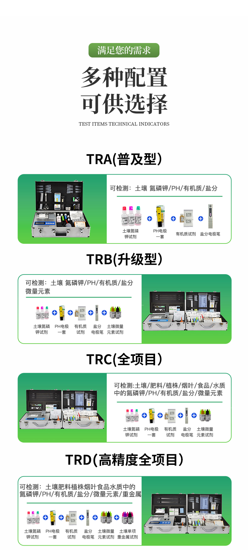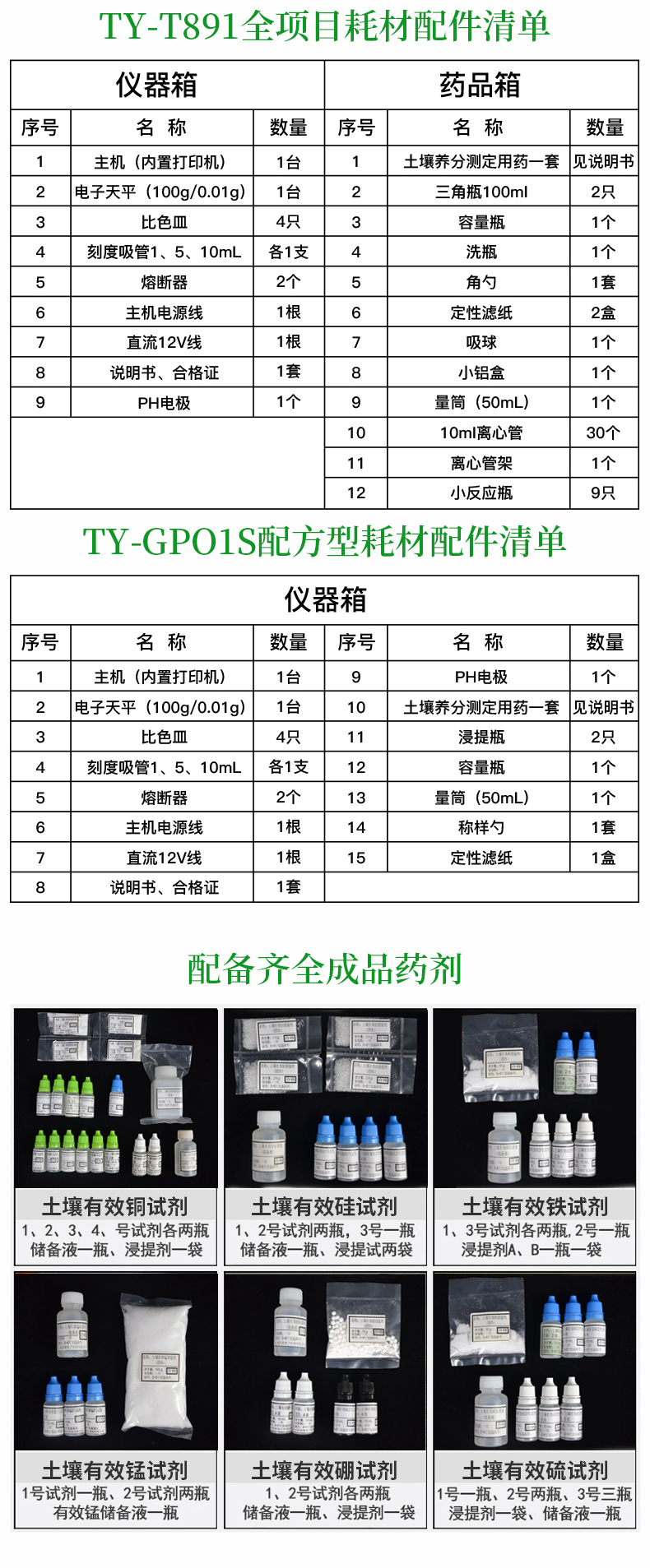 | 儀器整機質(zhì)保五年,終身免費維修服務(wù),免費郵寄儀器、免費培訓(xùn)、免費提供檢測試劑。 | 終身免費提供土肥等農(nóng)業(yè)相關(guān)技術(shù)支持! | 配置清單(兩個鋁合金箱子): |