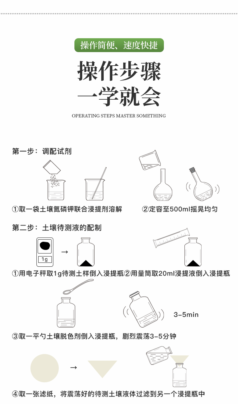 | 肥料養(yǎng)分專用快速檢測儀配套齊全:該儀器集藥、器、儀為一體,攜帶方便,相當(dāng)于一個小型實驗室。適于農(nóng)業(yè)服務(wù)部門或農(nóng)資經(jīng)銷商、肥料廠商測土施肥和鑒別肥料真假。 | 操作簡便、速度快捷,成品藥劑開瓶即用,無須配置。 | 性能可靠:工作穩(wěn)定性優(yōu)于國家標(biāo)準(zhǔn)JJG179-90指標(biāo)的6倍,重復(fù)性達到光柵型分光光度計指標(biāo)水平。 |