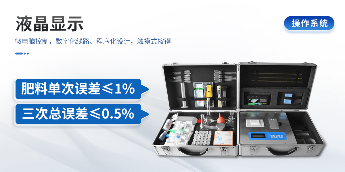 | 肥料養(yǎng)分專用檢測(cè)儀功能全:測(cè)試項(xiàng)目國(guó)內(nèi)外*全(各類藥劑均可選購(gòu))。 | 配套齊全,該儀器集藥、器、儀為一體,攜帶方便,相當(dāng)于一個(gè)小型實(shí)驗(yàn)室,用戶只需提供蒸餾水即可在要求時(shí)間內(nèi)完成全部操作。適于農(nóng)業(yè)服務(wù)部門(mén)或農(nóng)資經(jīng)銷商鑒別肥料真假、肥料廠商肥料生產(chǎn)中控、農(nóng)資質(zhì)檢部門(mén)進(jìn)行農(nóng)資打假,規(guī)范農(nóng)資市場(chǎng)。 | 性能可靠:工作穩(wěn)定性優(yōu)于國(guó)家標(biāo)準(zhǔn)JJG179-90指標(biāo)的10倍以上,重復(fù)性達(dá)到光柵型分光光度計(jì)指標(biāo)水平。 |