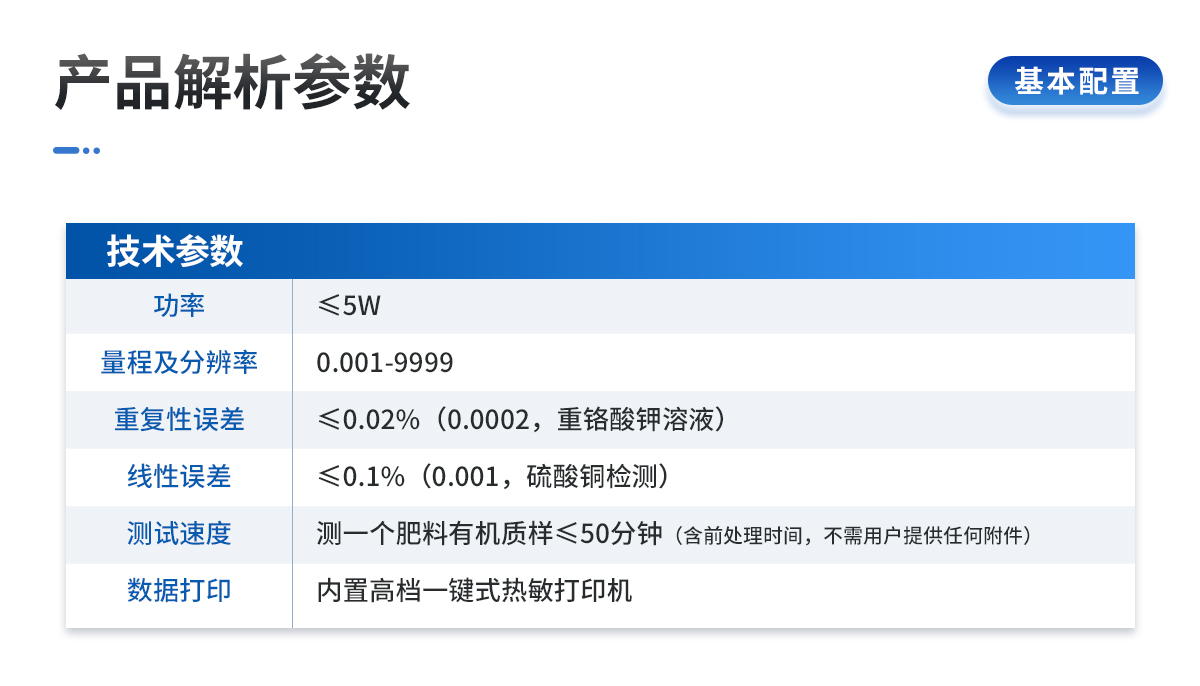 | 可檢測(cè)化肥、有機(jī)肥(含葉面肥、水溶肥、噴施肥等)、植株中的有機(jī)質(zhì)、腐殖酸等。 | 安卓智能操作系統(tǒng),采用更加**和人性化操作,儀器標(biāo)配wifi聯(lián)網(wǎng)上傳、4G聯(lián)網(wǎng)傳輸、GPRS無(wú)線遠(yuǎn)傳,快速上傳數(shù)據(jù)。 | 采用精密旋轉(zhuǎn)比色池設(shè)計(jì),光源一致性更加**保證檢測(cè)精度。一次性可快速檢測(cè)12個(gè)樣品,極大提升檢測(cè)效率,降低檢測(cè)成本。 | 儀器配有數(shù)據(jù)接收平臺(tái),無(wú)需數(shù)據(jù)線,數(shù)據(jù)可直接局域網(wǎng)和互聯(lián)網(wǎng)無(wú)線上傳,方便進(jìn)行數(shù)據(jù)管理和數(shù)據(jù)長(zhǎng)期分析。 | 儀器內(nèi)置新一代高速熱敏打印機(jī),檢測(cè)完成可自動(dòng)打印檢測(cè)報(bào)告和二維碼。 | 高靈敏7寸電容觸摸屏,高清晰高交互顯示,大程度降低傳統(tǒng)儀器的繁瑣操作和失誤。 | 每個(gè)通道均配置四波長(zhǎng)冷光源,所有光源實(shí)現(xiàn)恒流穩(wěn)壓,保證波長(zhǎng)穩(wěn)定。 硅半導(dǎo)體作為信號(hào)接收系統(tǒng),壽命長(zhǎng)達(dá)10萬(wàn)小時(shí)級(jí)別。重現(xiàn)性好,準(zhǔn)確度高。 |