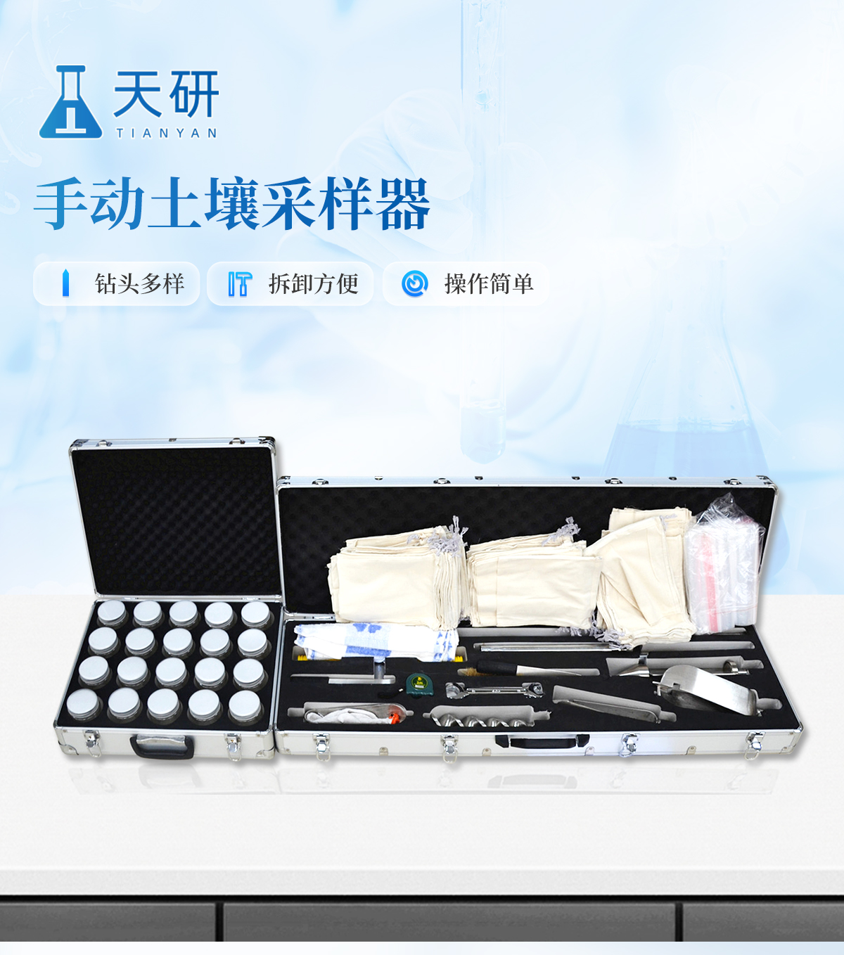 | TY-QY04手動土壤采樣器綜合套裝,土壤采樣器、污泥采樣器、標(biāo)準(zhǔn)采樣設(shè)備。 | 可采集不同質(zhì)地土壤樣品, | 拆卸方便、體積小便于戶外攜帶, | 操作簡單。 |
