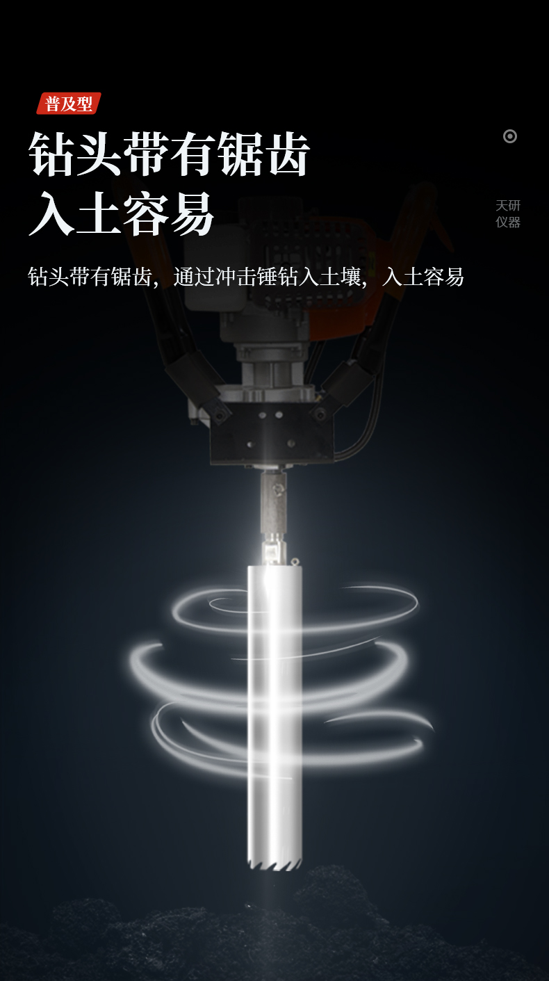 | 旋轉(zhuǎn)式,上下沒有擾動,不會破壞土壤剖面結(jié)構(gòu) | 采樣量大,插銷連接,易于拆卸。 | 鉆頭帶有鋸齒,通過沖擊錘鉆入土壤,入土容易。 | 筒型鉆頭獨特可拆卸裁口設(shè)計,取樣容易。 | 樣品處于比較寬松的柱狀圓筒中,取出十分容易 | 狀土壤很難被壓縮(保持原狀) | 采集一個樣本就可以研究整個土壤剖面情況 | 比開挖一個采樣坑要節(jié)約時間和減少樣本破壞 | 可有效地用于所有類型的土壤 |