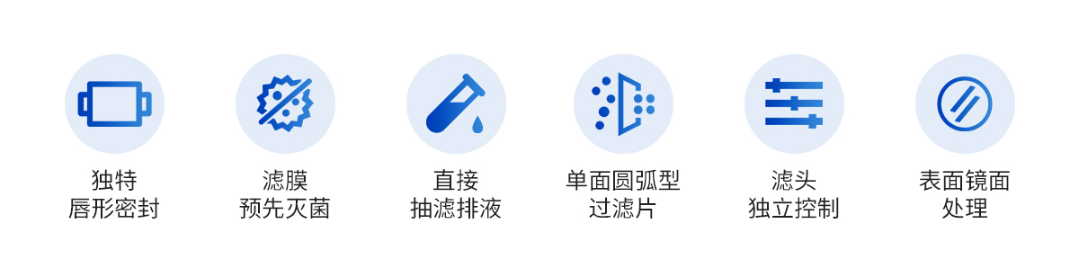 | 1.過濾杯采用獨(dú)特的唇形密封設(shè)計(jì),不使用夾鉗和 O 型圈,確保無泄 漏操作和均勻的微生物回收率 2.濾膜預(yù)先滅菌,即拆即用,可將主要污染物源降到**,提高檢測可靠性 3..直接抽濾排液,抽濾瓶,安裝使用方便 4.**真空泵,效率更高 5.小巧的機(jī)身,減少對操作臺(tái)面積的占用 6.防水開關(guān) 簡潔方便 7.六聯(lián)過濾頭設(shè)計(jì),可同時(shí)抽濾,提高工作效率,每個(gè)濾頭也可獨(dú)立控制,方便操作人員靈活使用 8.過濾頭可快速拆裝,能單獨(dú)濕熱滅菌 9.過濾頭可以火焰快速滅菌,方便連續(xù)實(shí)驗(yàn)操作 10.采用單面圓弧型過濾片,方便更換 11.儀器表面經(jīng)鏡面處理,便于清潔和消毒 12.濾杯采用可重復(fù)使用材料設(shè)計(jì),經(jīng)久耐用,節(jié)省成本,操作方便 |