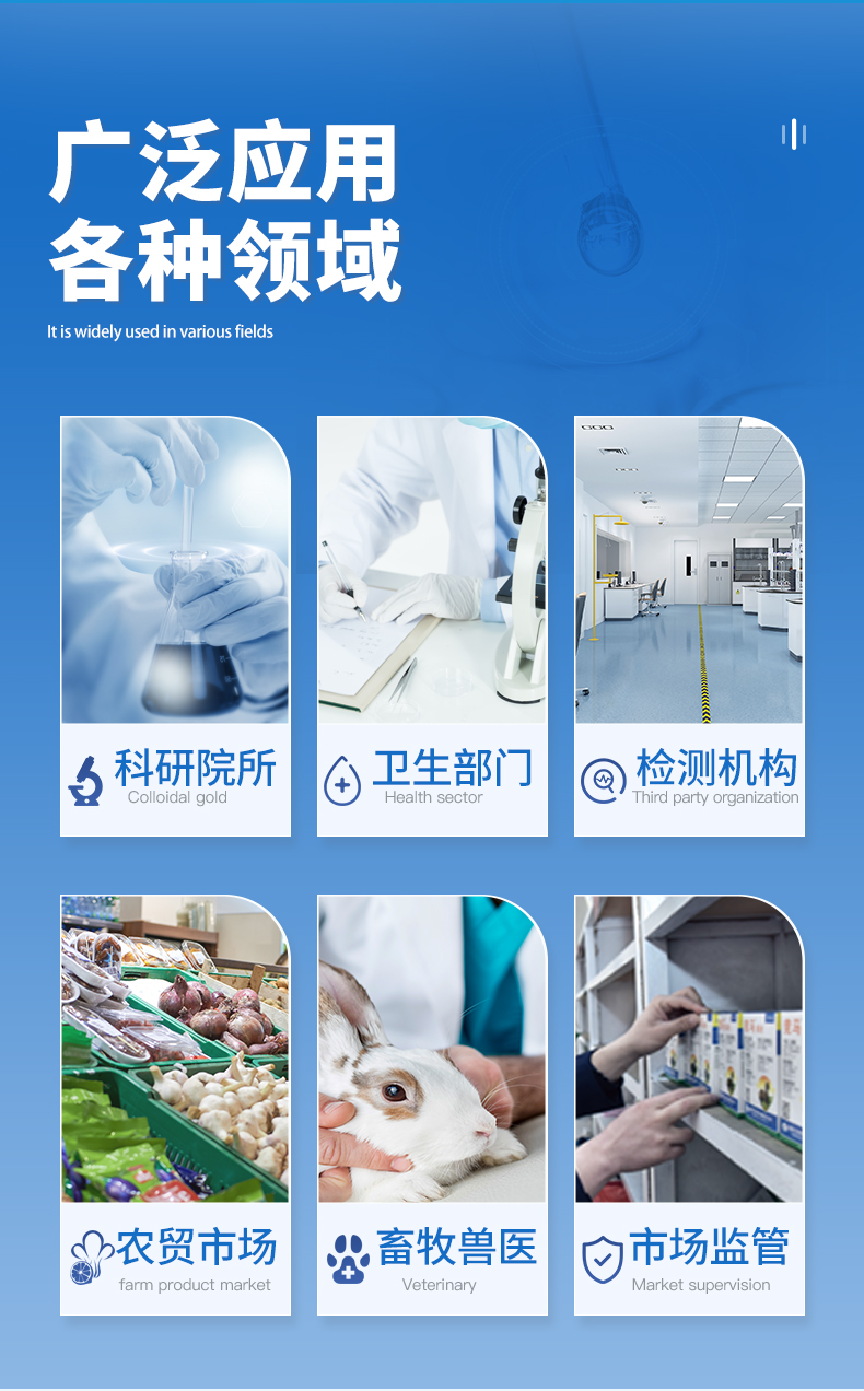 | 瘦肉精激素類(獸藥):鹽酸克倫特羅、沙丁胺醇、萊克多巴胺、己烯雌酚、喹乙醇等 | 抗生素殘留類(獸藥):四環(huán)素類、硝基呋喃類、磺胺類、沙星類、喹諾酮類、慶大霉素、鏈霉素、阿莫西林、紅霉素等 | 水產(chǎn)品安全類:孔雀石綠、氯霉素、呋喃妥因代謝、呋喃西林代謝、呋喃它酮代謝、呋喃唑酮代謝等 | 以及病害肉及肉類新鮮度的擴(kuò)展檢測。 |